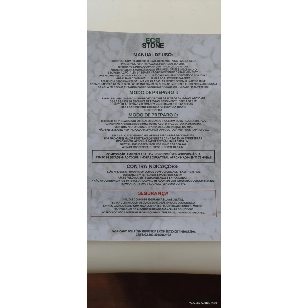 O Eco Stone é um fixador inovador desenvolvido para aplicação em pedras ornamentais, seixos e pedriscos decorativos. Ele garante aderência, durabilidade e acabamento natural, sendo ideal para áreas externas, jardins, calçadas, caminhos, paisagismo e projetos decorativos.